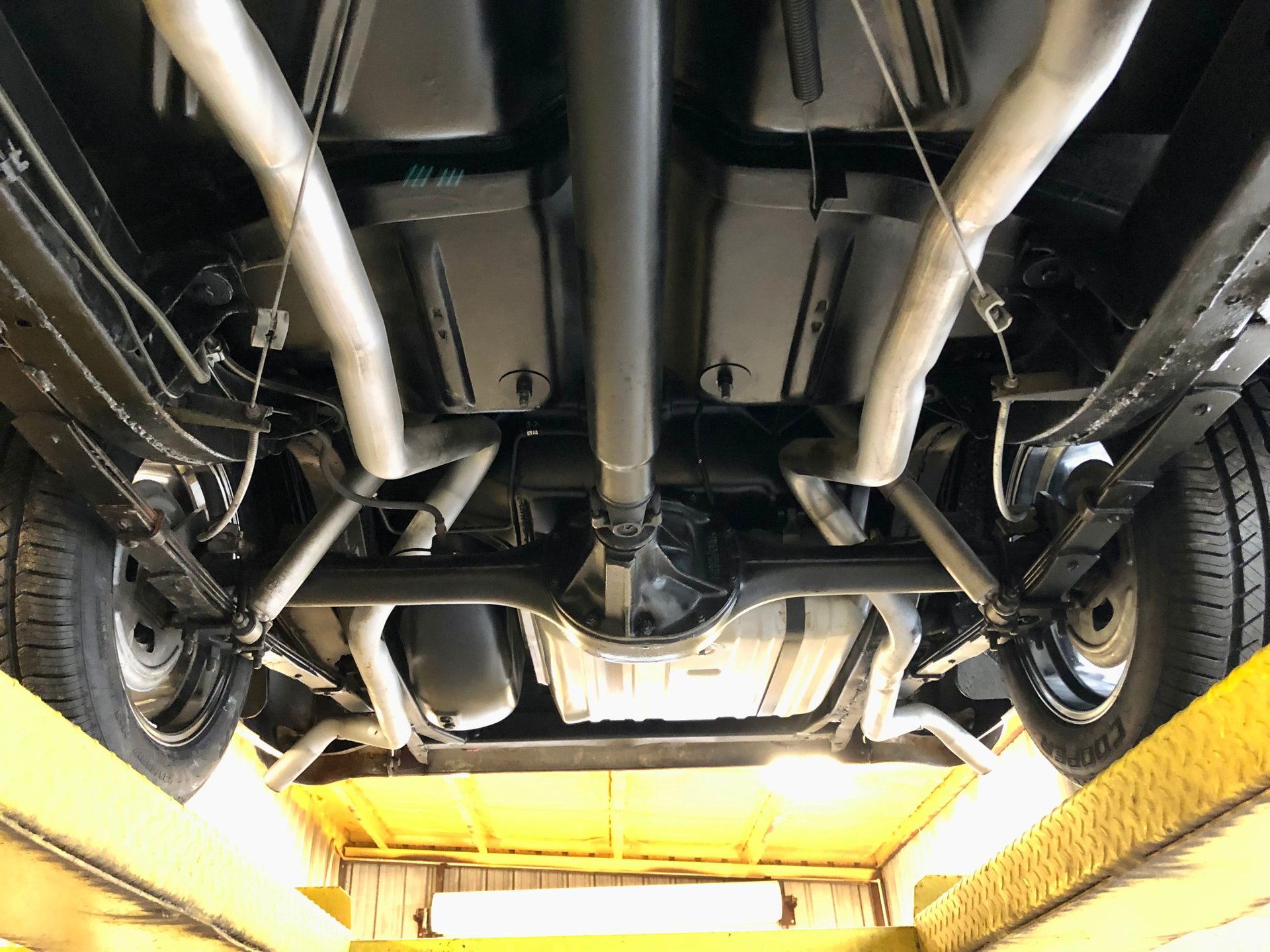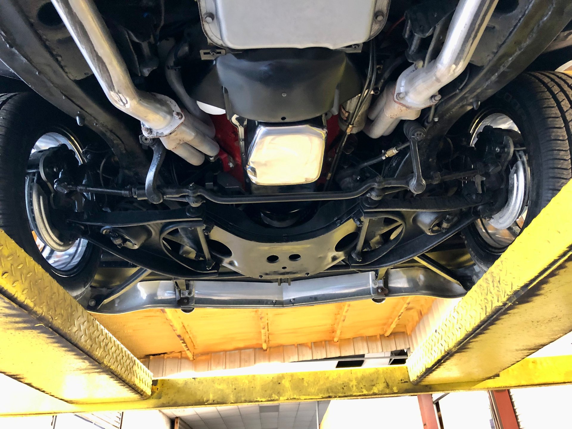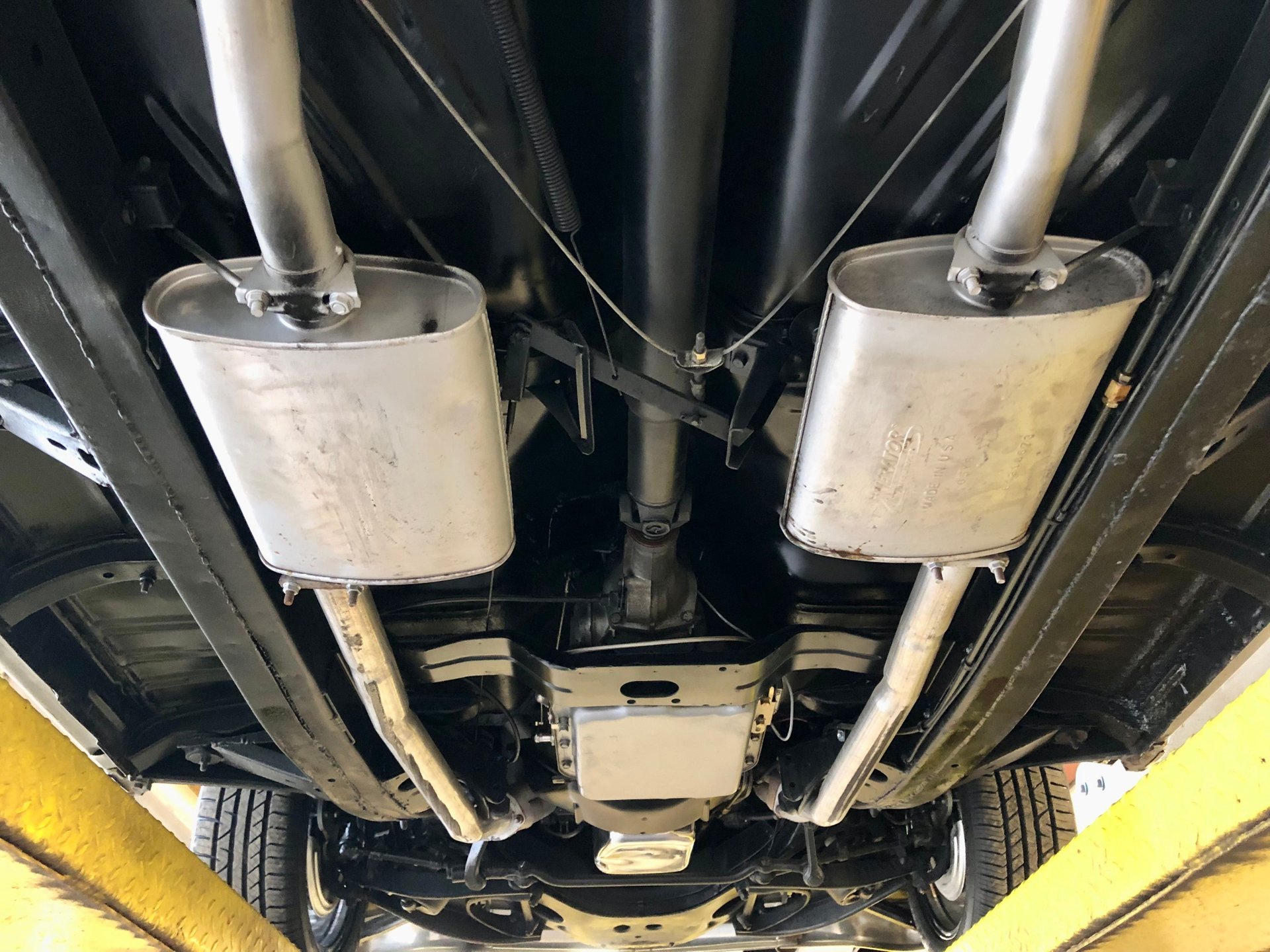 Inside, enjoy a completely new interior with all chrome hardware, custom reclining split-bench seat with fold-down armrest, Ididit chrome tilt column with classic 15″ wheel, and vintage air conditioning. 17″ chrome alloy REV wheels with brand-new tires complete the show-ready look.