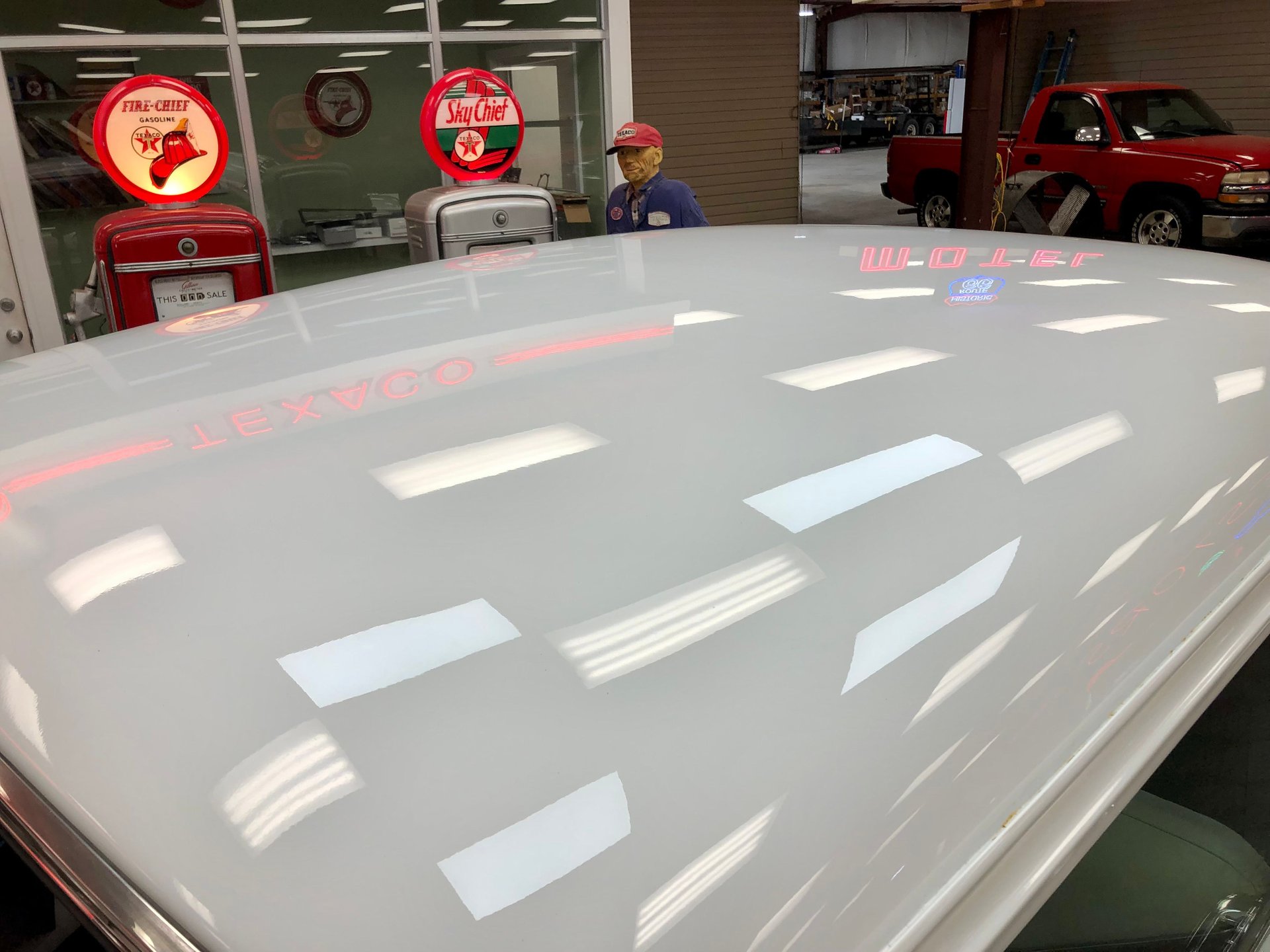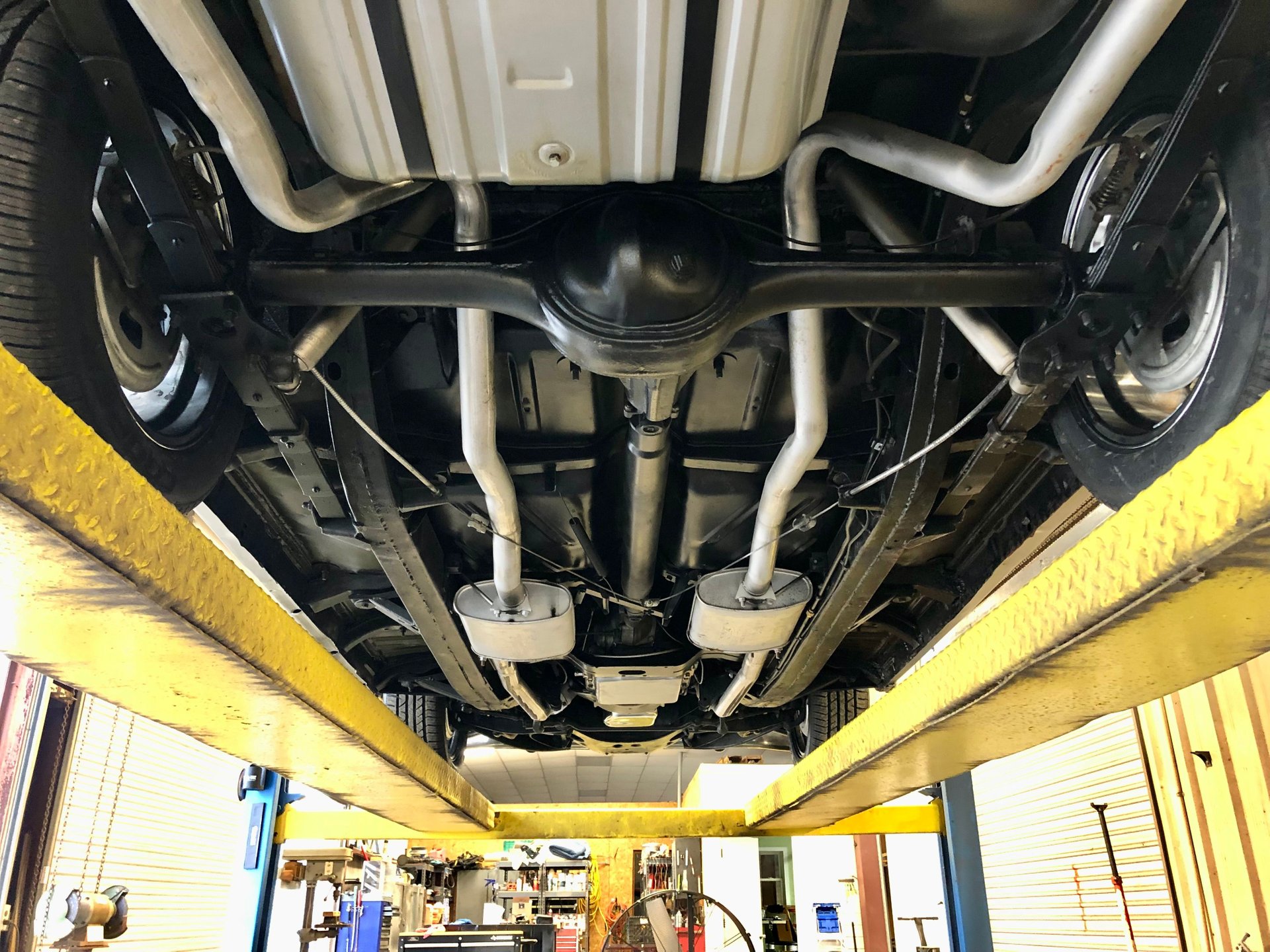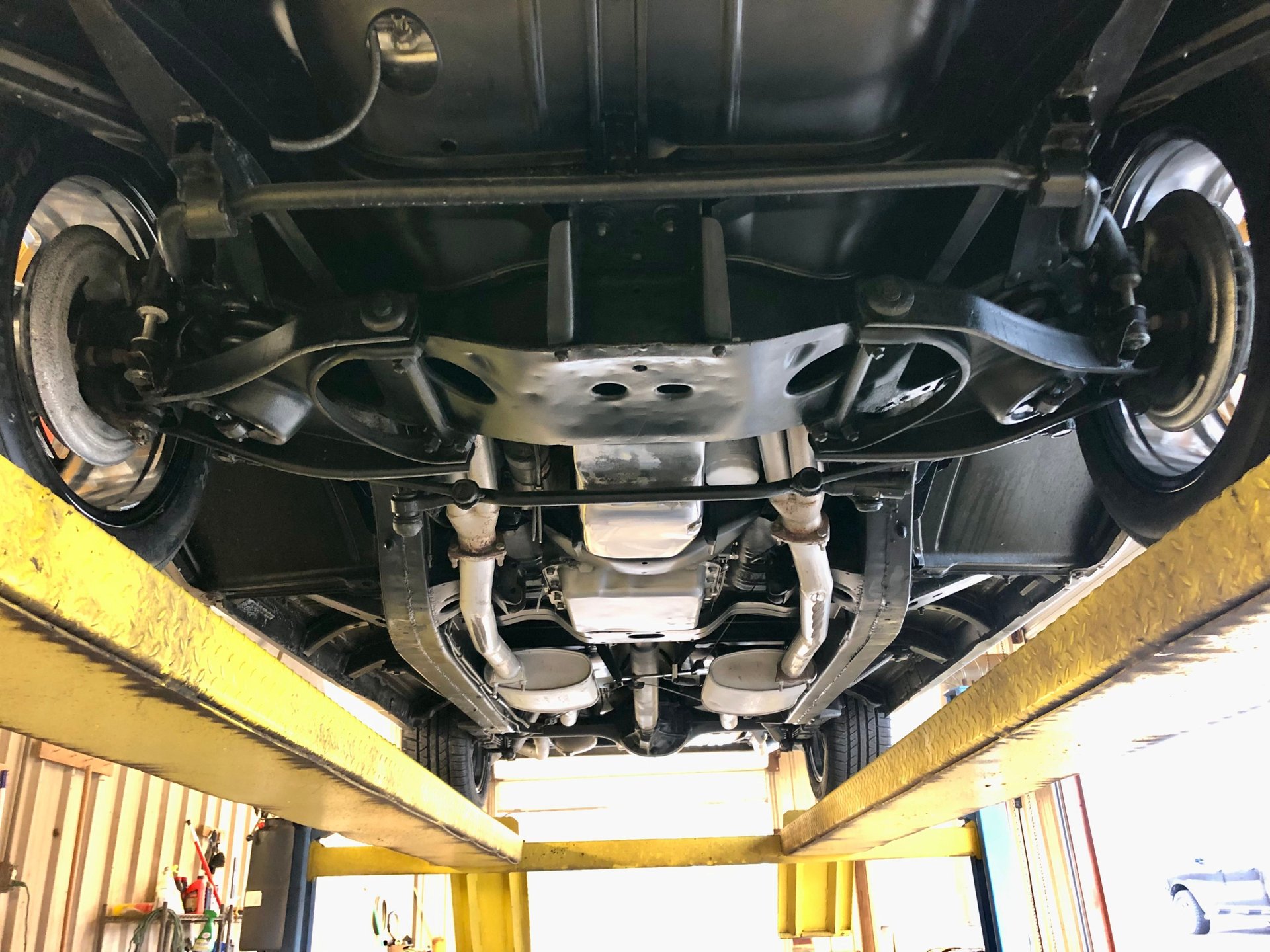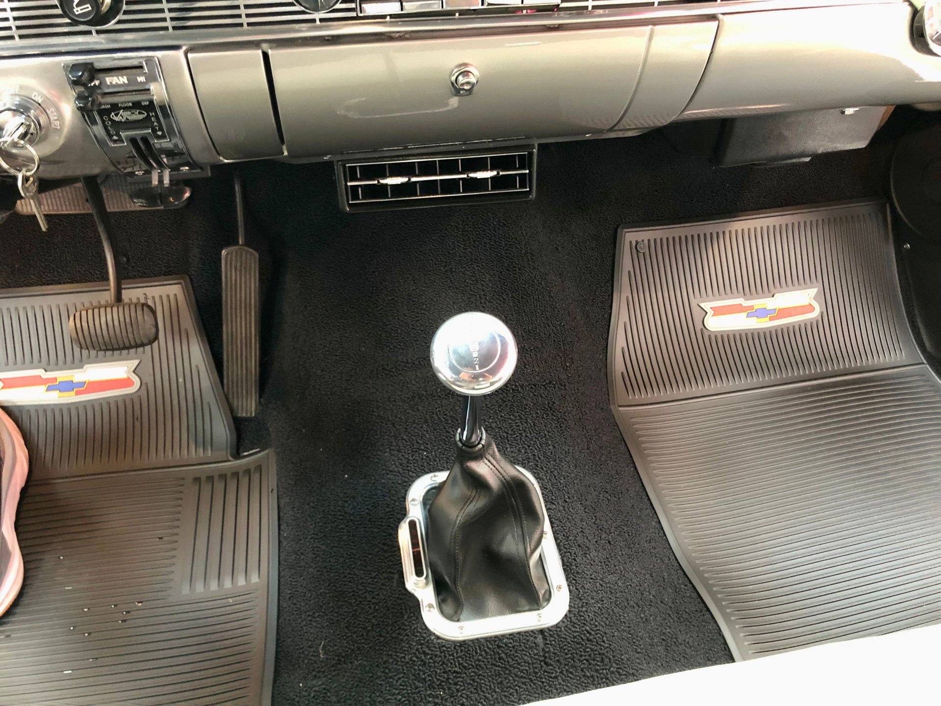 Inside, enjoy a completely new interior with all chrome hardware, custom reclining split-bench seat with fold-down armrest, Ididit chrome tilt column with classic 15″ wheel, and vintage air conditioning. 17″ chrome alloy REV wheels with brand-new tires complete the show-ready look.