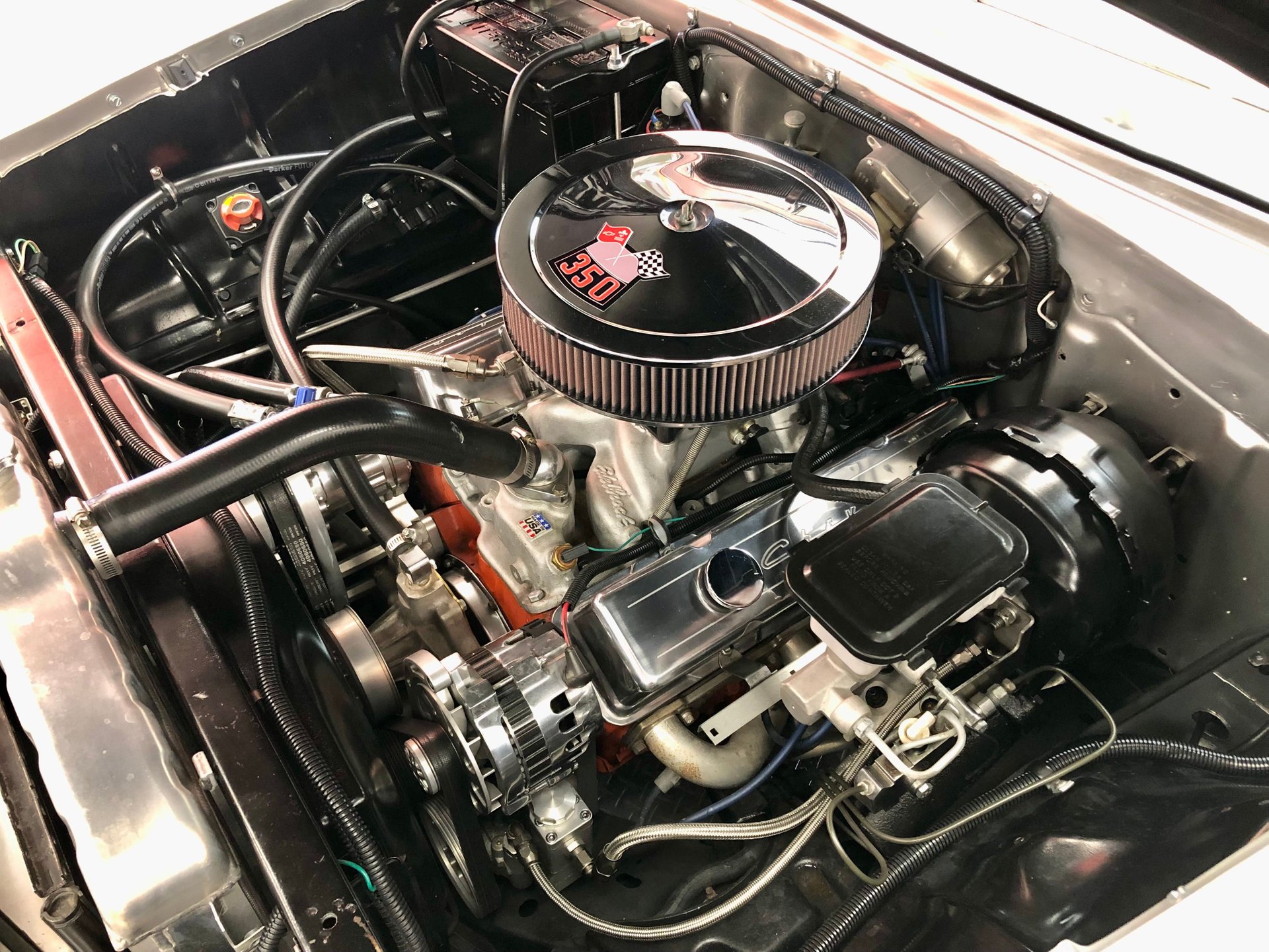 Under the hood, a 350 V8 GM crate engine with Edelbrock intake, Holley carb, MSD distributor, headers, and a March serpentine pulley system delivers incredible power. Paired with a 700R4 automatic overdrive transmission with Lokar shifter, power steering, and 4-wheel power disc brakes, it drives as smoothly as it looks.