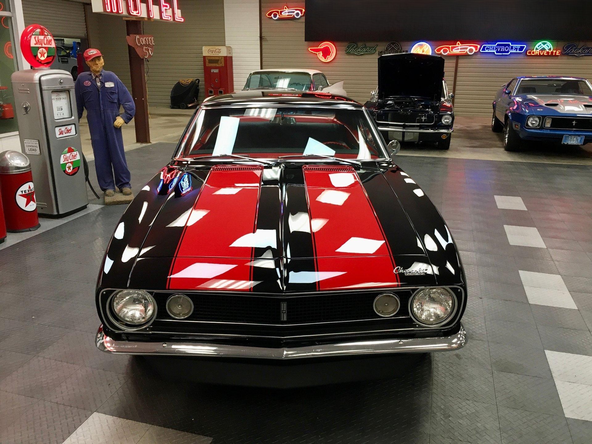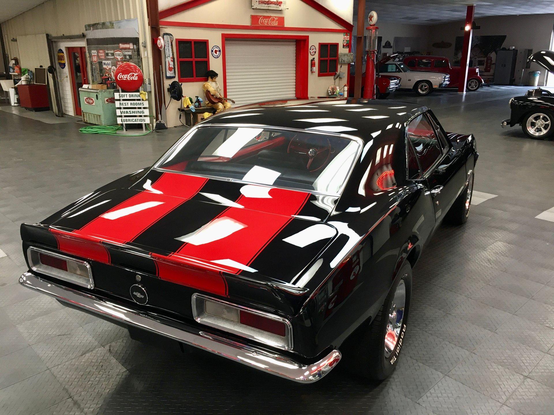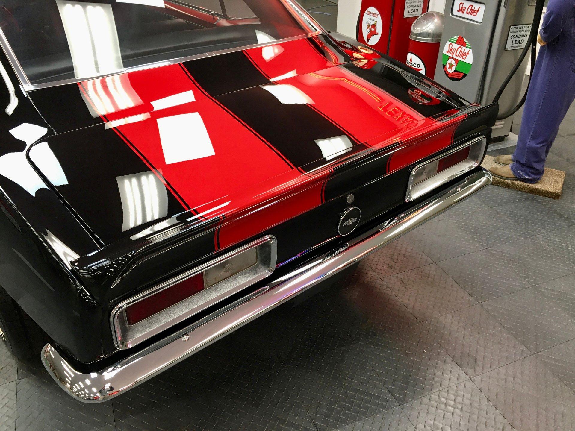 Own a piece of American muscle car history with this stunning 1967 Camaro, fully restored to perfection! Fresh out of restoration, it features show-quality black two-stage paint with striking red Z28 stripes, laser-straight body panels, and impeccable fit and finish.