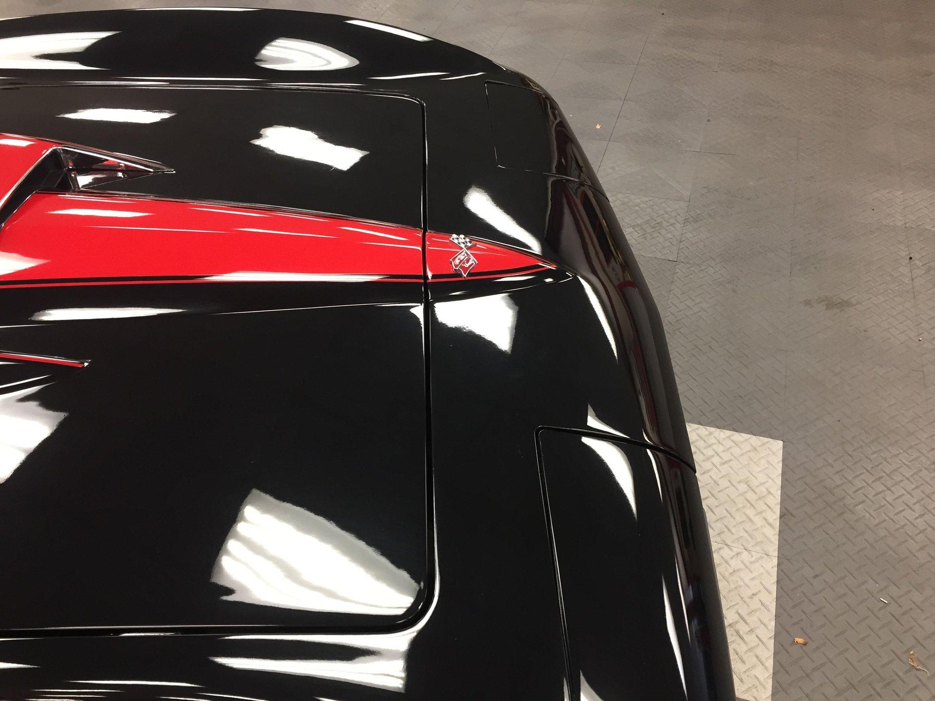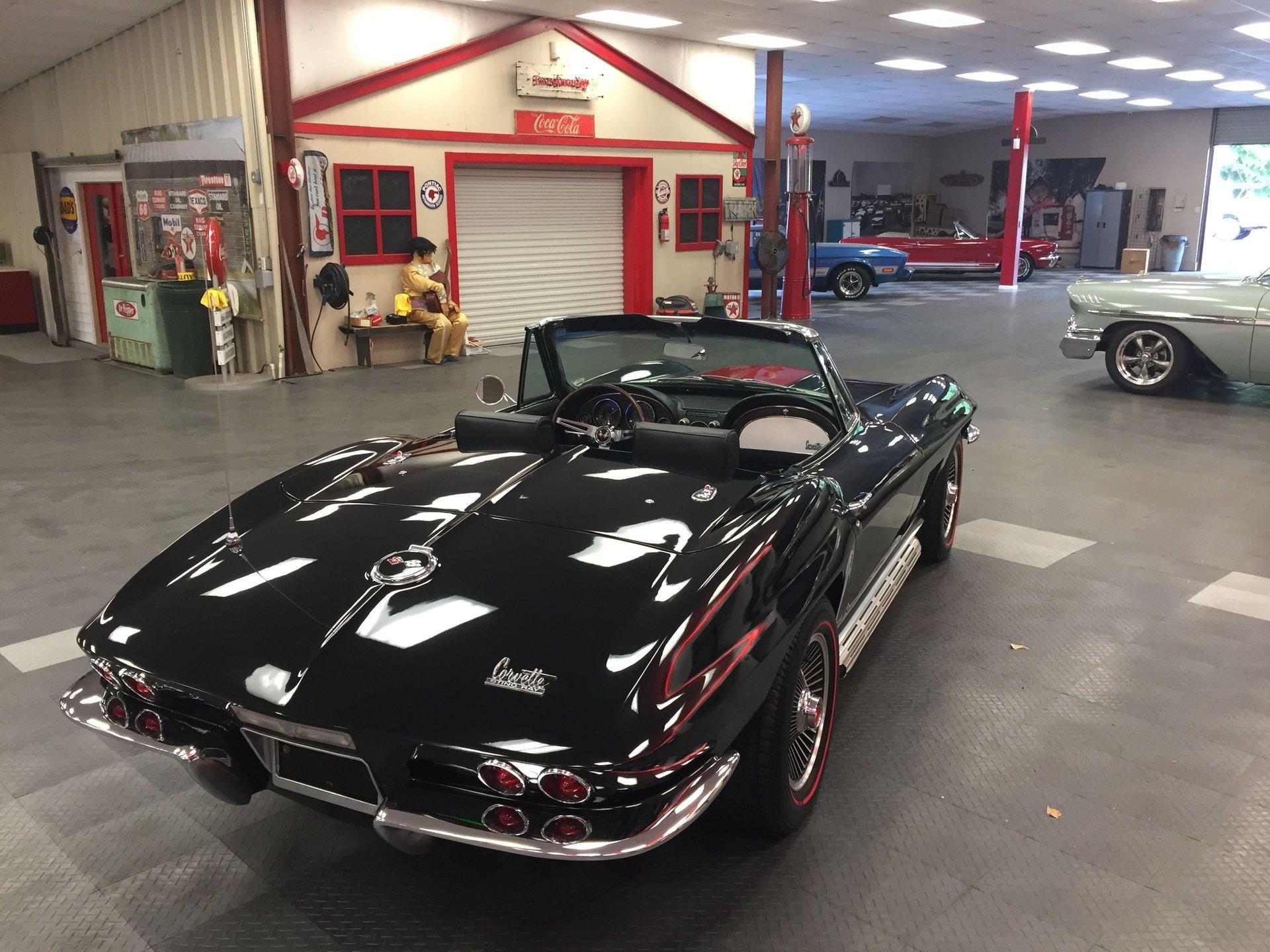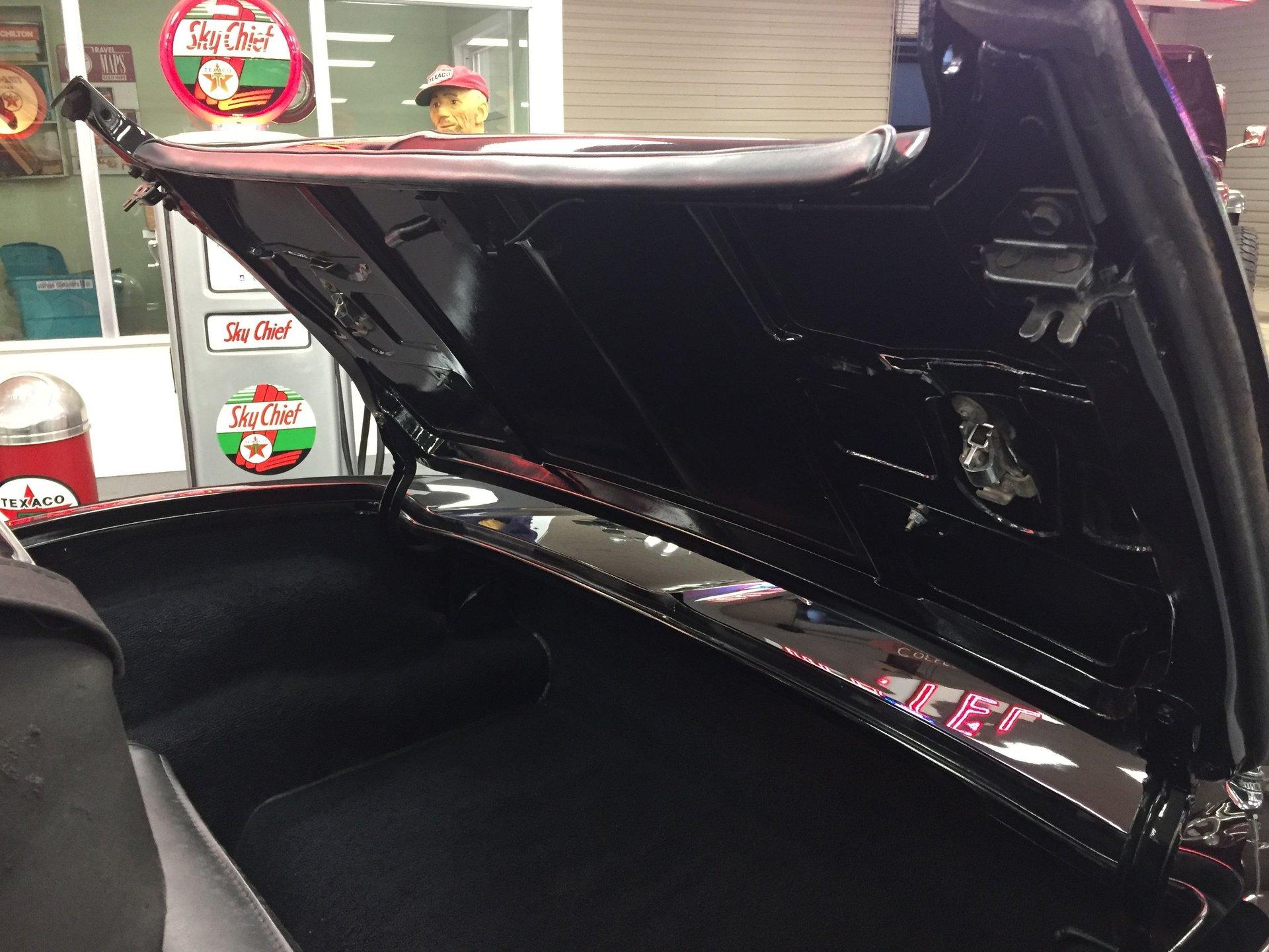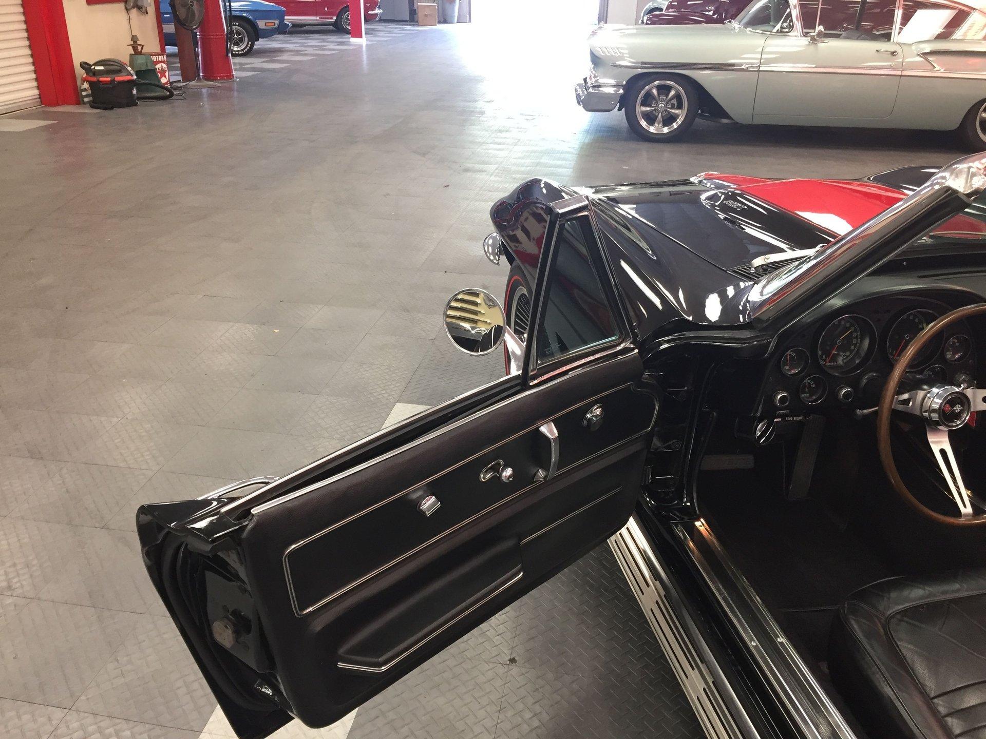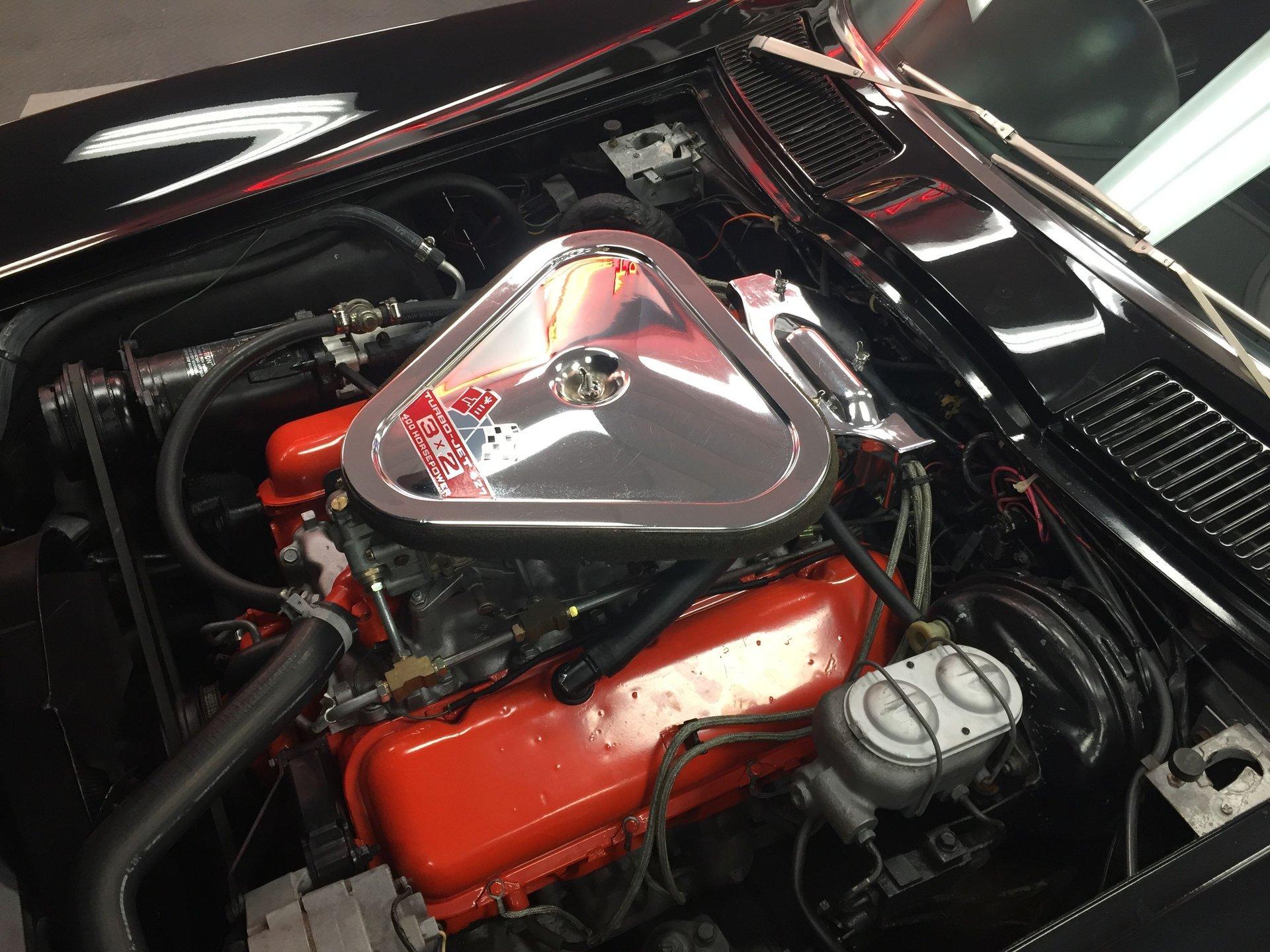 Black leather interior with headrests, telescopic steering wheel, AM-FM stereo, and Red Line tires complete the classic look. Arrow-straight body, superb fit and finish, and a high-gloss black paint make this Corvette stand out.