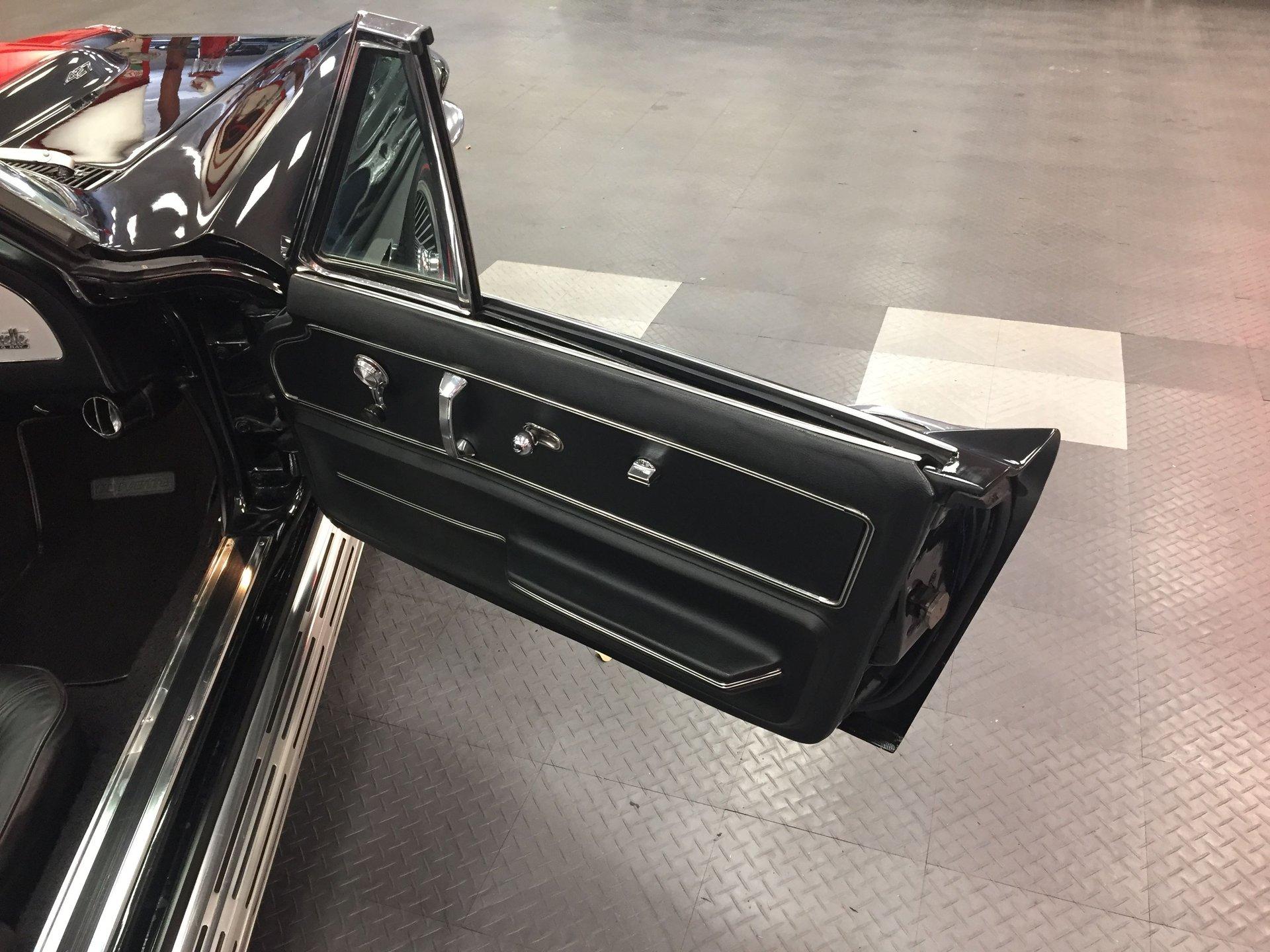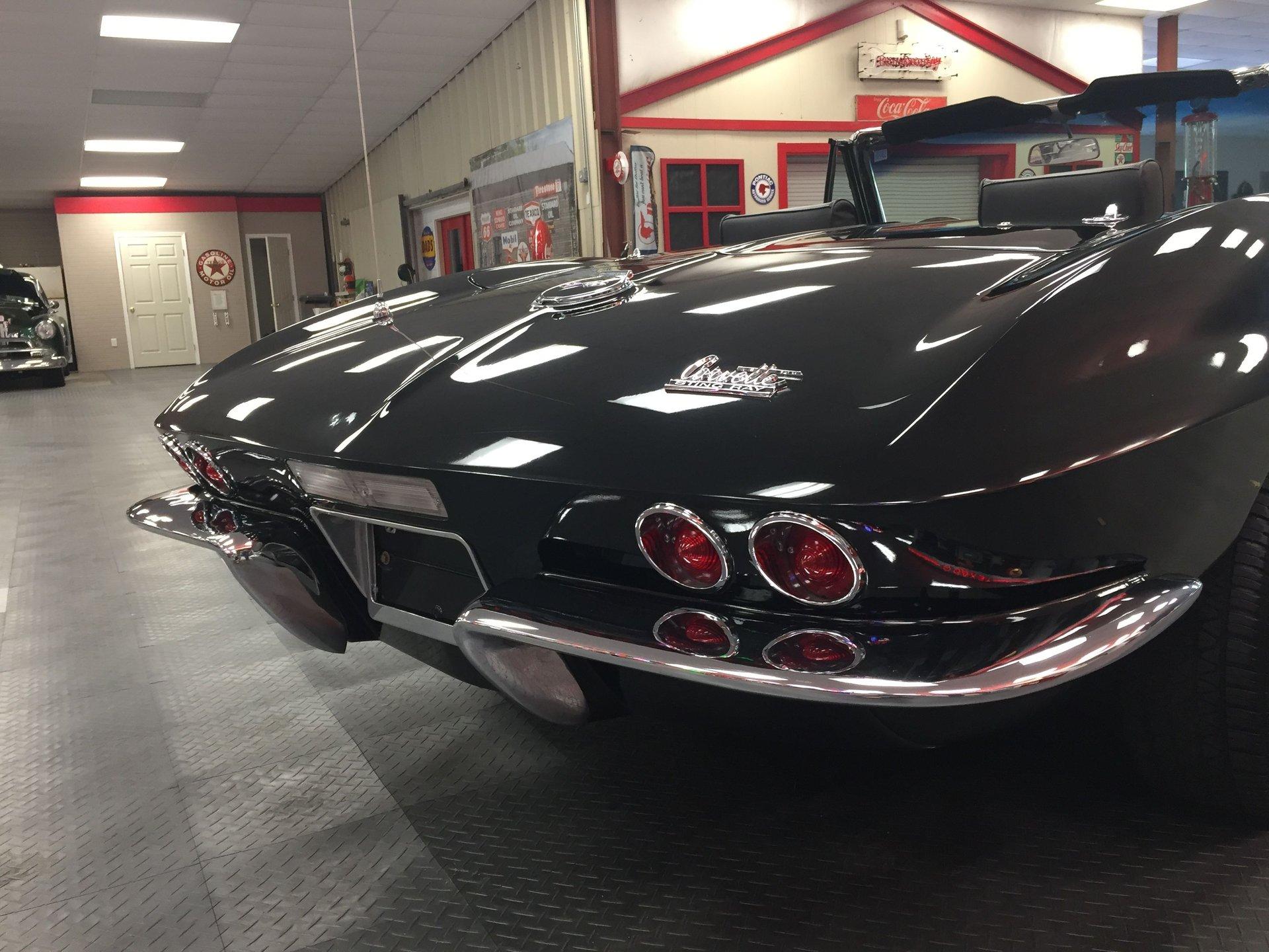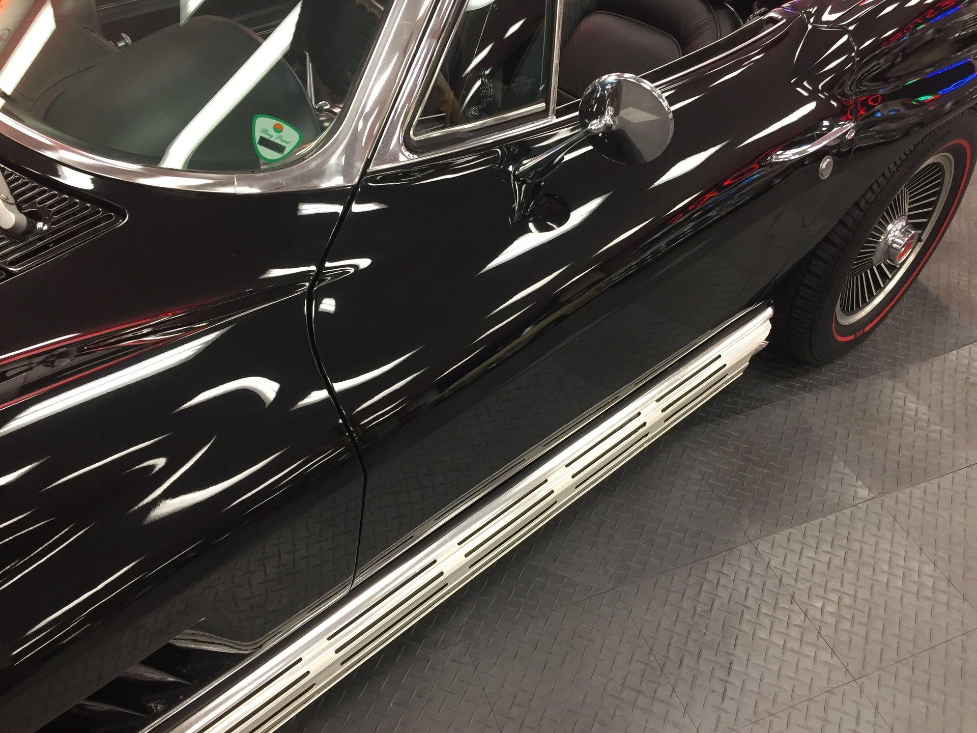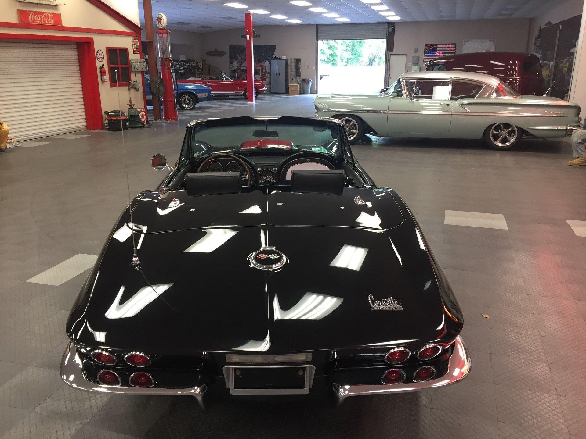 Black leather interior with headrests, telescopic steering wheel, AM-FM stereo, and Red Line tires complete the classic look. Arrow-straight body, superb fit and finish, and a high-gloss black paint make this Corvette stand out.