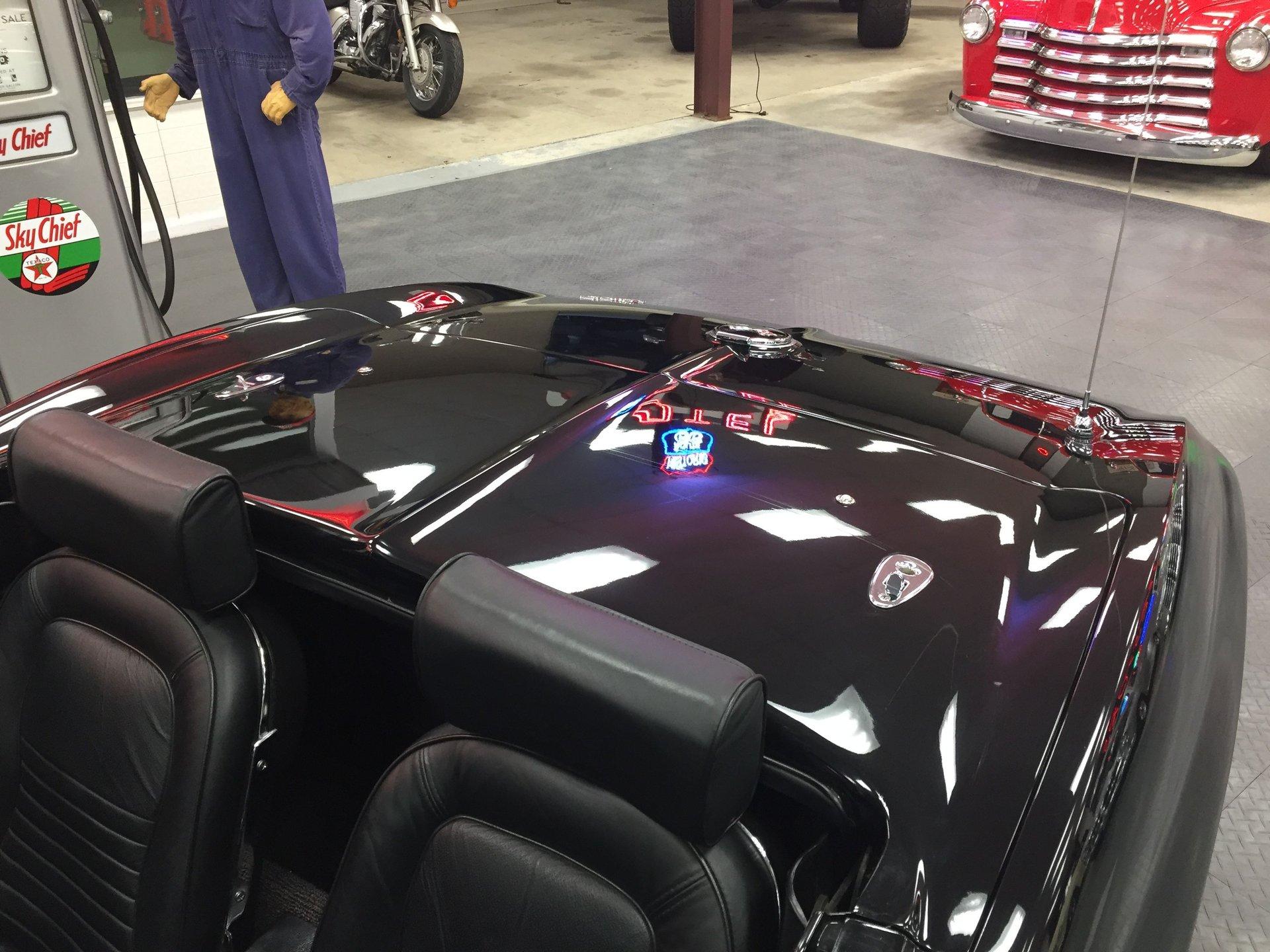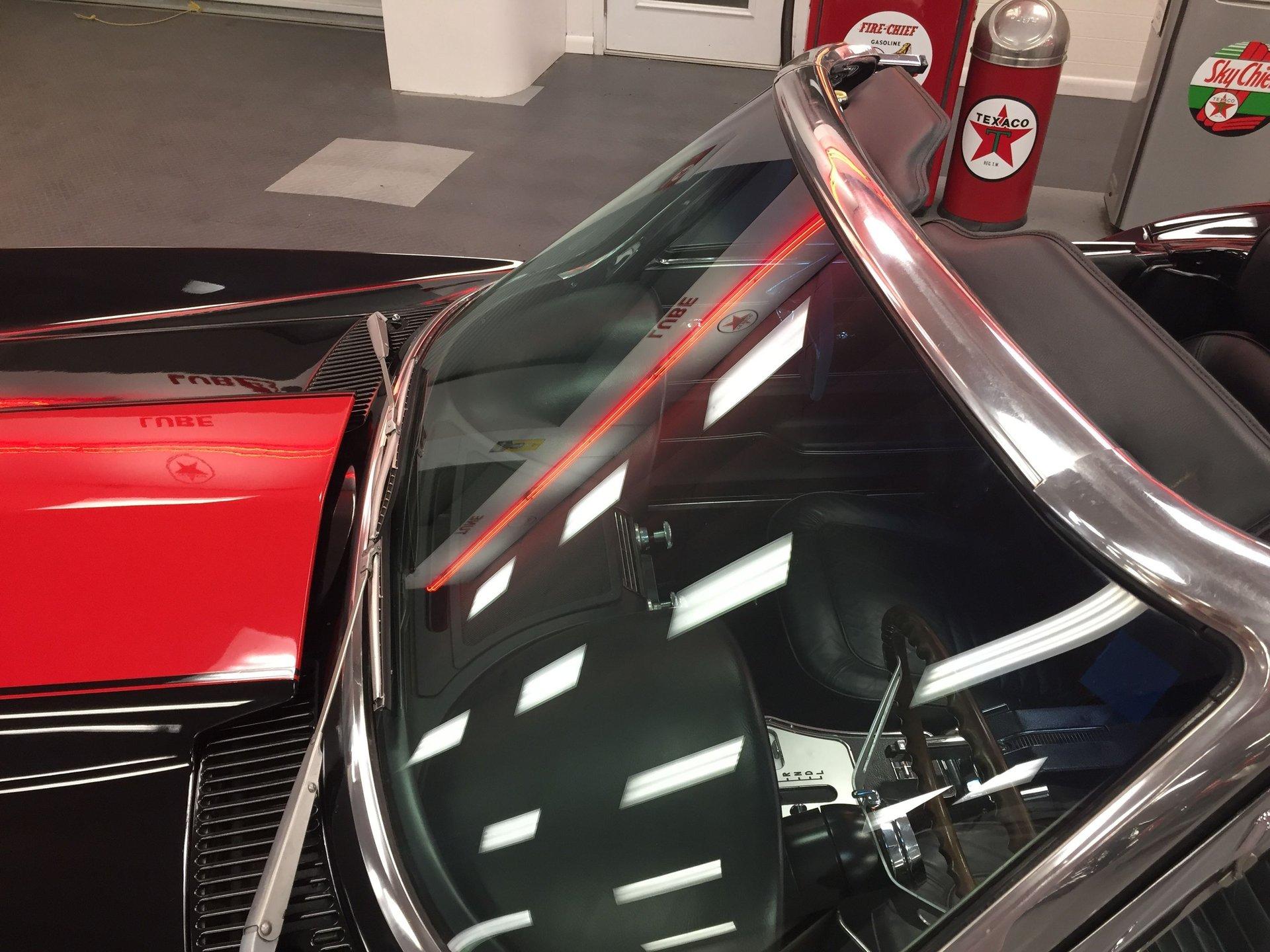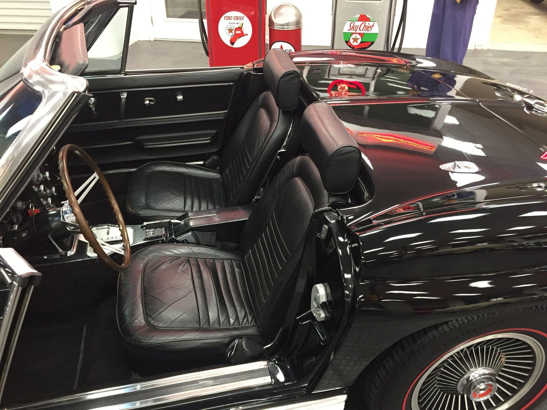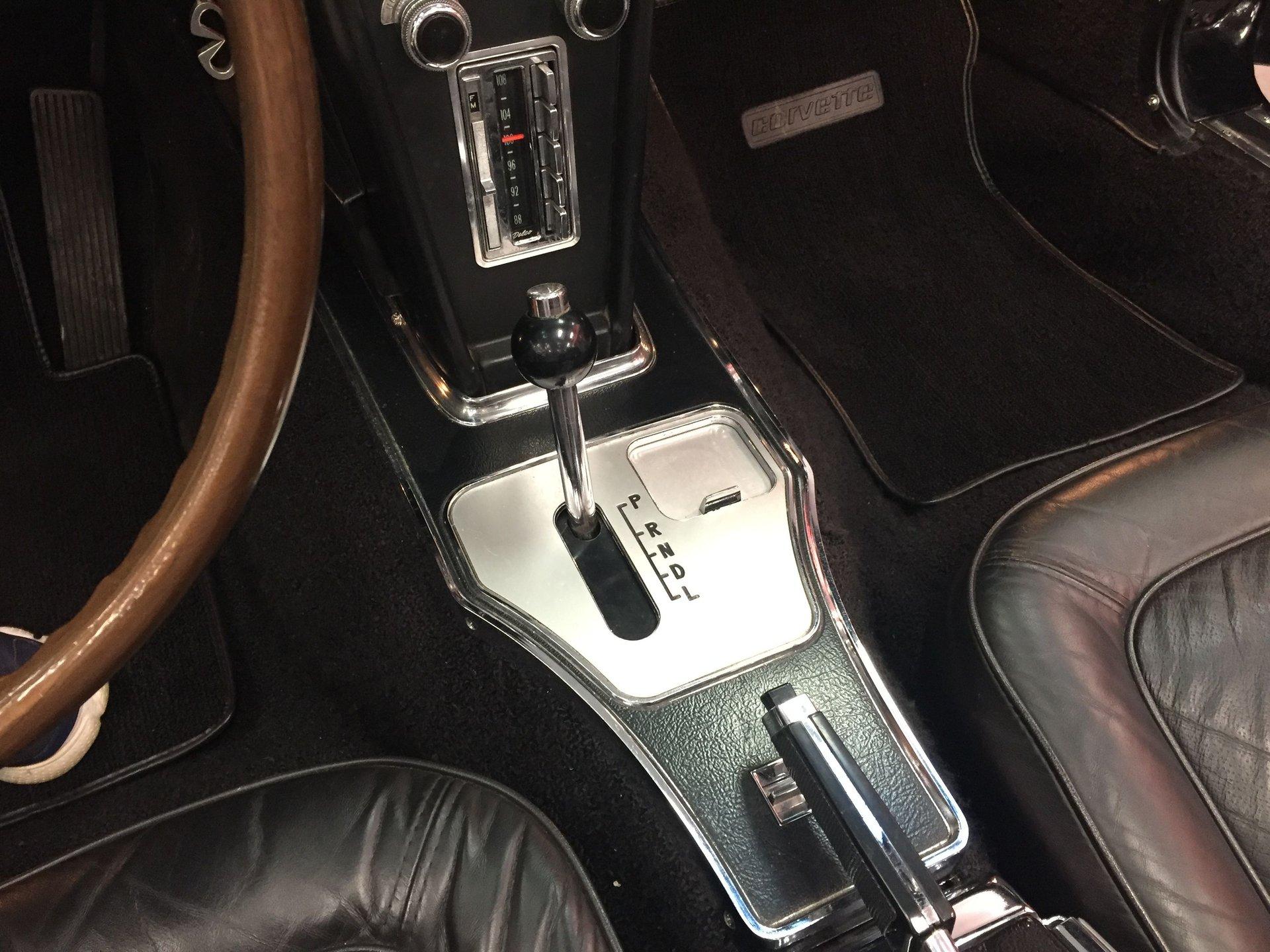 Black leather interior with headrests, telescopic steering wheel, AM-FM stereo, and Red Line tires complete the classic look. Arrow-straight body, superb fit and finish, and a high-gloss black paint make this Corvette stand out.