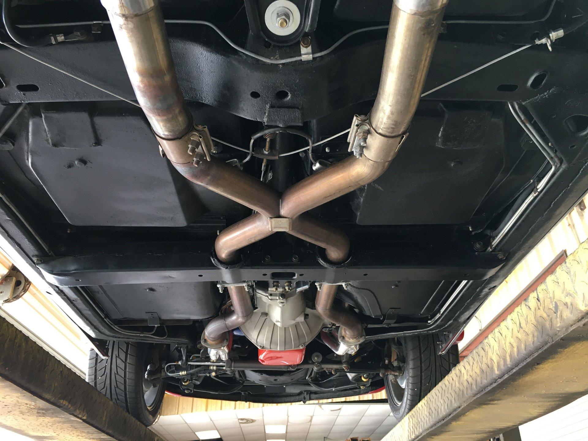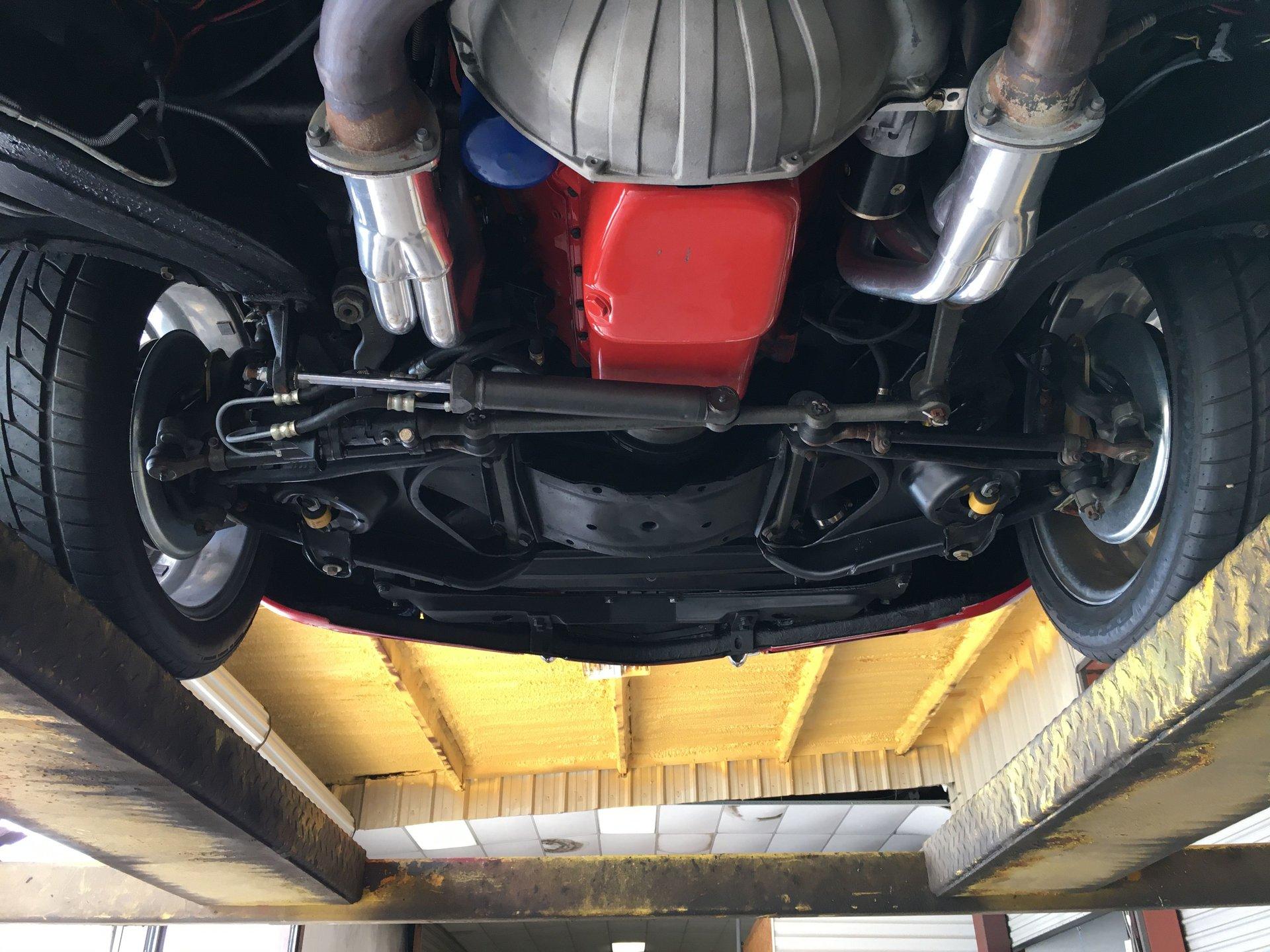 Under the hood sits a 350 V8 enhanced with MSD Fuel Injection, aluminum heads, aluminum intake, and aluminum water pump – a setup that delivers crisp throttle response and a noticeable boost in power over the factory configuration. Doug long-tube headers give the engine a deeper, richer tone, while the 4-speed manual transmission keeps the driving experience engaging and authentic.