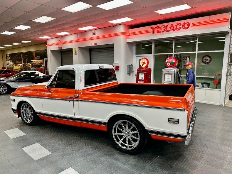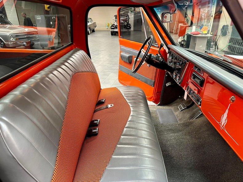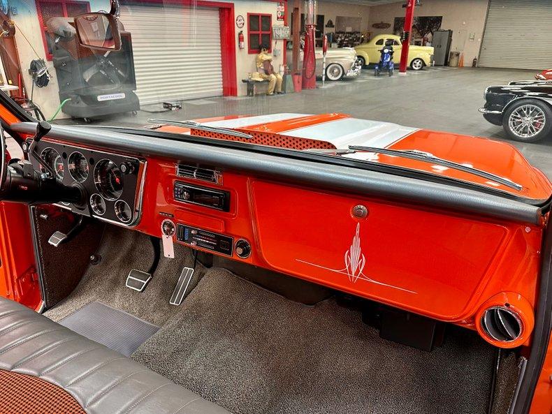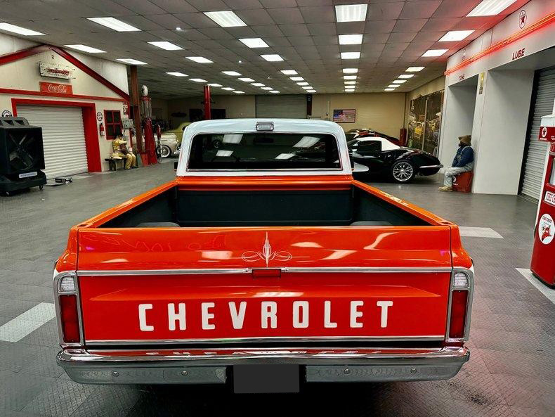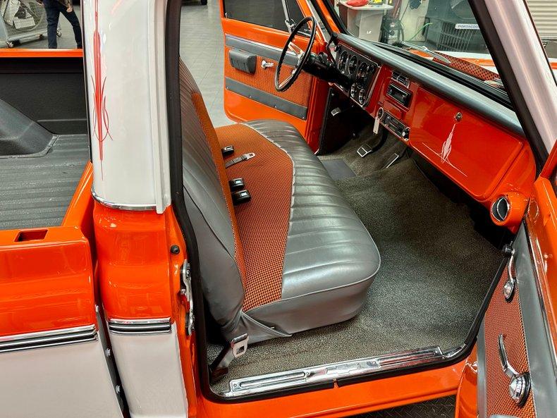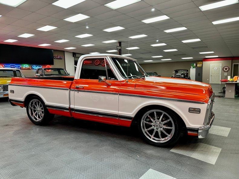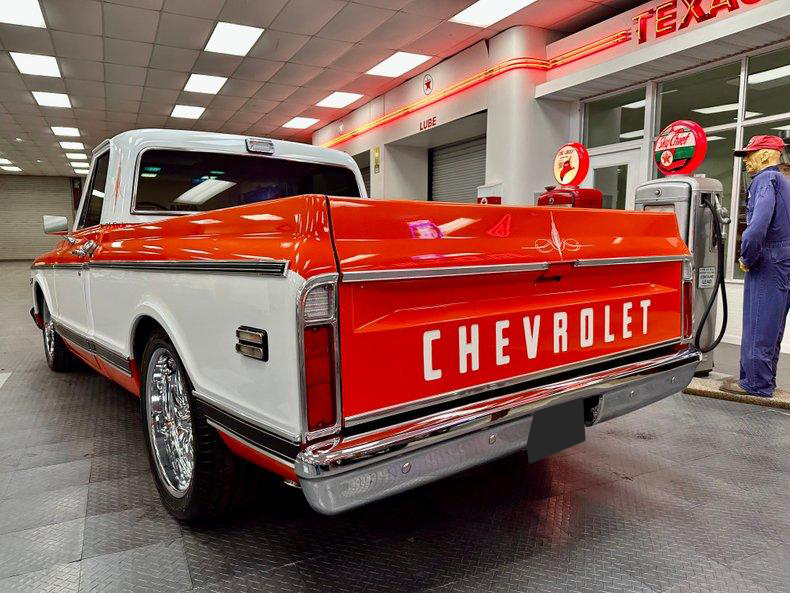 This stunning 1972 Chevrolet C10 Custom Pickup is the perfect combination of classic truck style and modern performance. Built from the ground up with a full frame-off restoration, it features eye-catching Hugger Orange and White two-stage paint, all-new chrome and stainless trim, and a flawless fit and finish throughout.