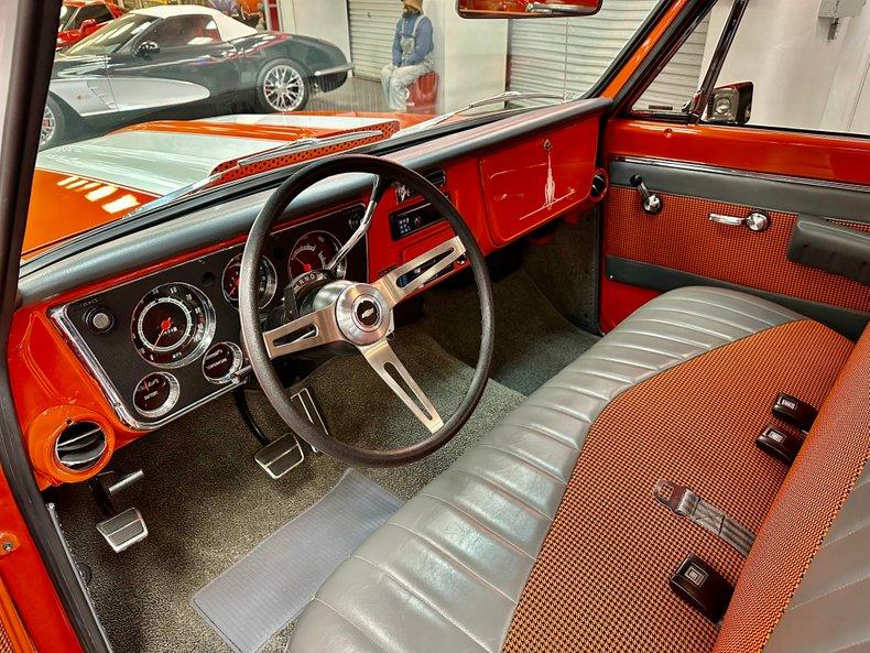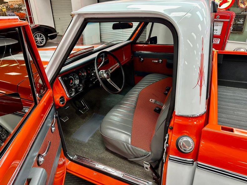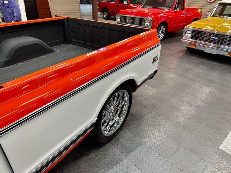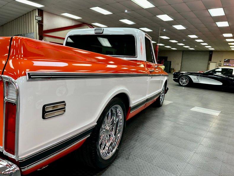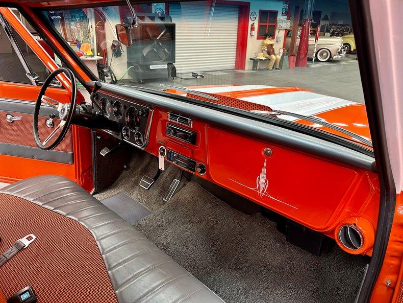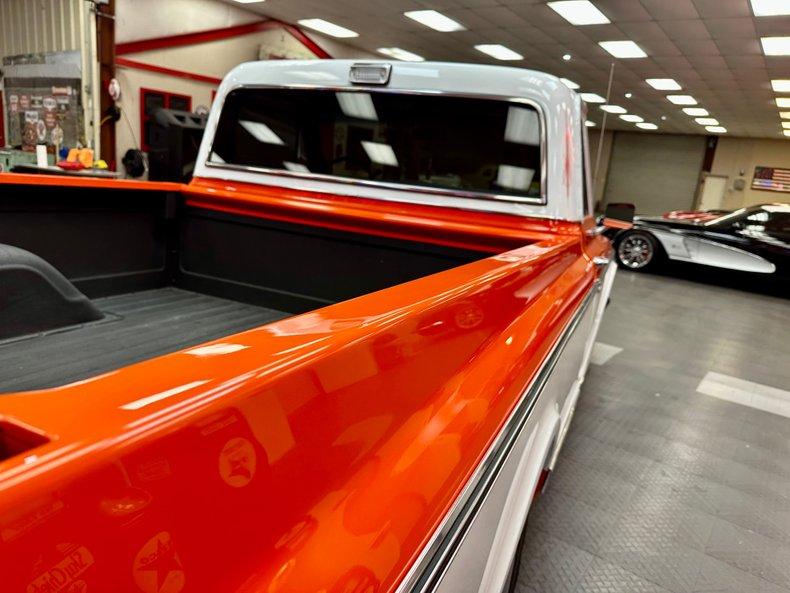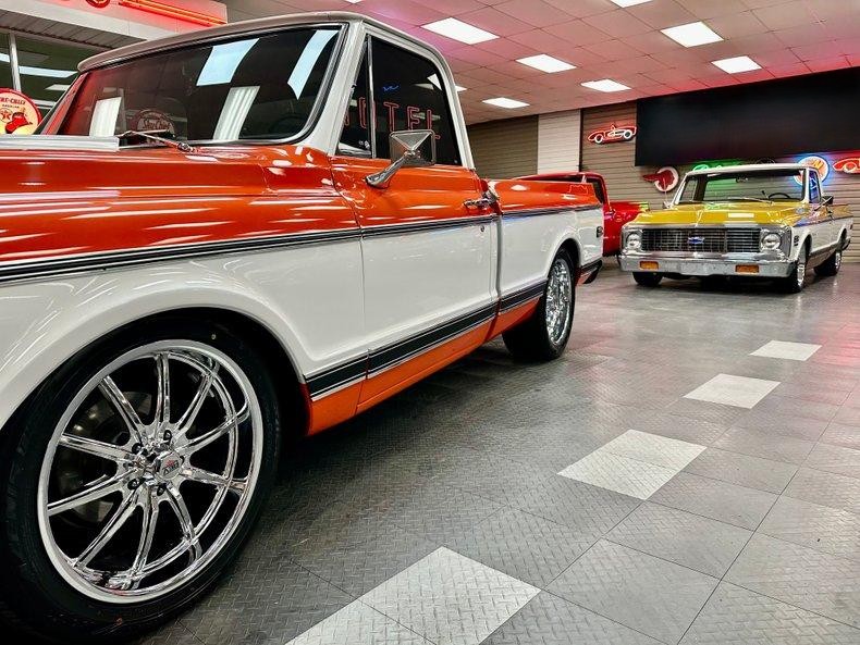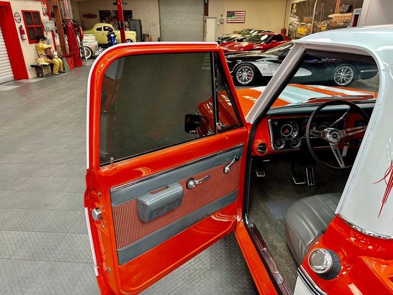 This stunning 1972 Chevrolet C10 Custom Pickup is the perfect combination of classic truck style and modern performance. Built from the ground up with a full frame-off restoration, it features eye-catching Hugger Orange and White two-stage paint, all-new chrome and stainless trim, and a flawless fit and finish throughout.