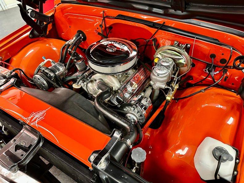 Inside, the all-new interior includes new chrome hardware, tilt column, air conditioning, AM/FM/AUX stereo, new GM gauges, and a new GM wiring harness and fuse block. Sitting on 20″ chrome wheels, this C10 has an aggressive stance and show-stopping presence.