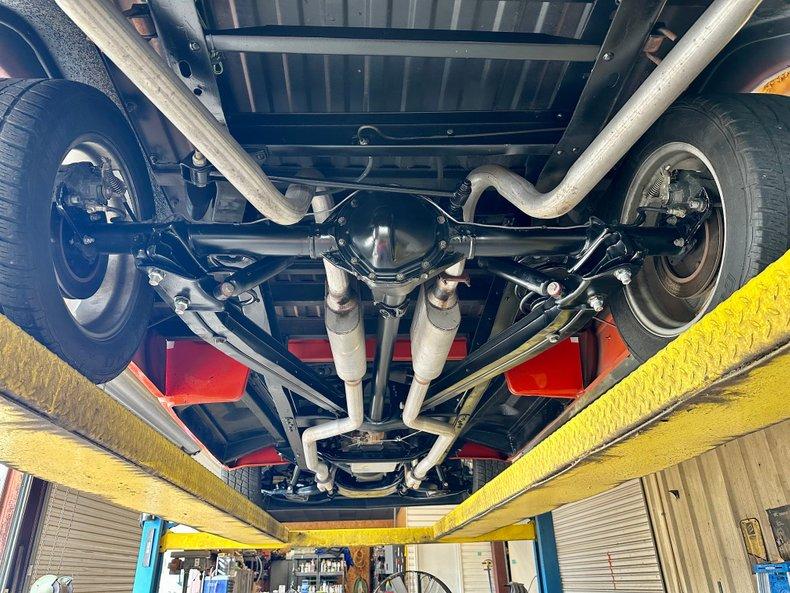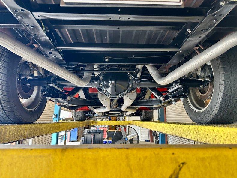 Power comes from a GM crate 350 V8 equipped with an aluminum intake, Holley carburetor, HEI distributor, and Hooker headers, backed by a smooth-shifting 700R4 automatic overdrive transmission. A GM 12-bolt rear axle with 3.42 gears, power steering, and 4-wheel power disc brakes deliver excellent drivability and performance.